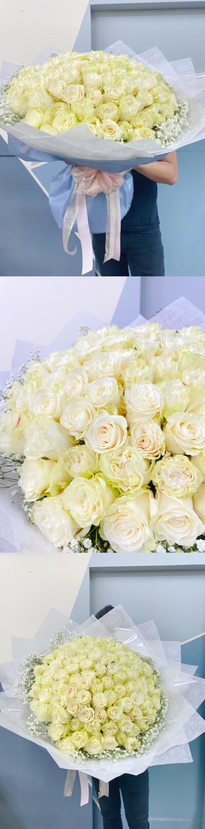 花材 : 99朵進口白玫瑰 / 滿天星