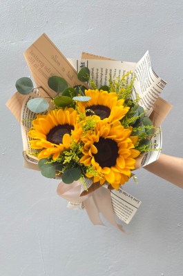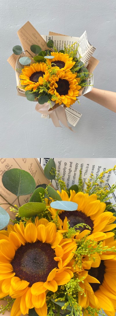 花材 :向日葵3支、麒麟草、圓葉尤加利葉