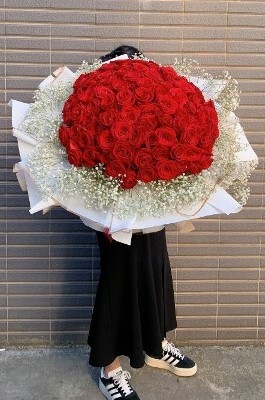 花材 : 99朵進口紅玫瑰 / 滿天星