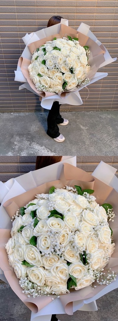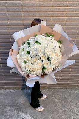 花材 : 51朵進口白玫瑰 / 滿天星