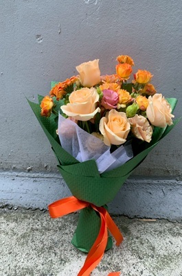 花材 :台灣玫瑰、洋桔梗、迷你非洲菊與其他配材